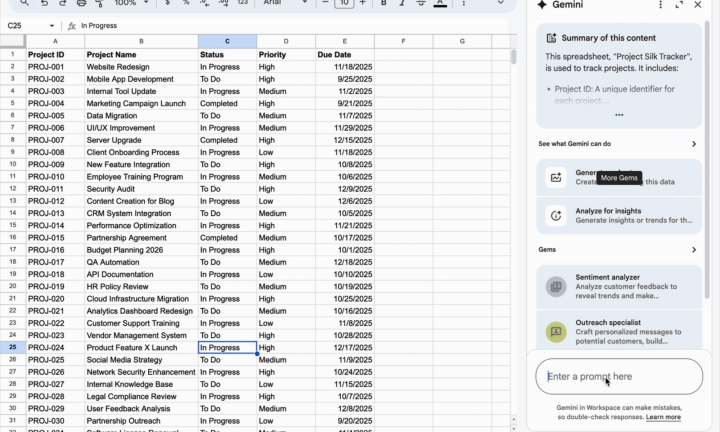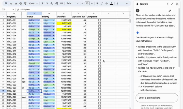 The latest upgrade leverages Gemini’s agentic AI capabilities, enabling it to handle tasks such as formatting, data cleaning, structural edits, and filtering—all in a single prompt. Users simply describe the task in natural language, and Gemini executes it with precision.